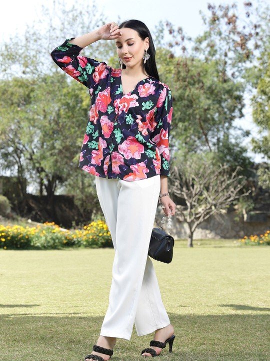 👉 Style Tip: White or beige bottom aur statement earrings ke saath pair karein for a chic & elegant look.