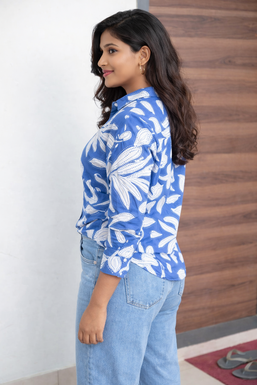 Elegant blue & white floral printed women’s shirt/top