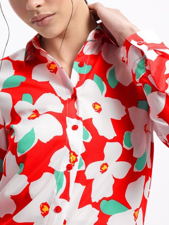 Glitchez Garden Floral Print Shirt For Women