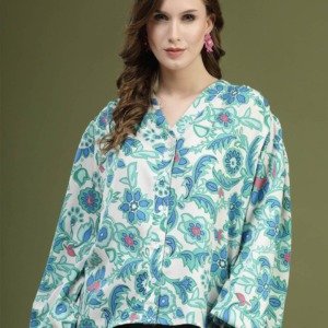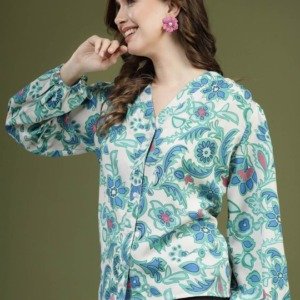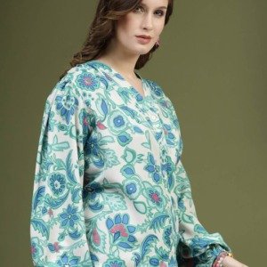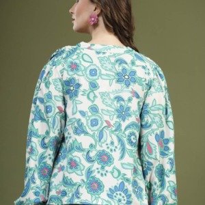 Be the first to review “PLUSS Green – White Floral Printed Shirt Style Top”